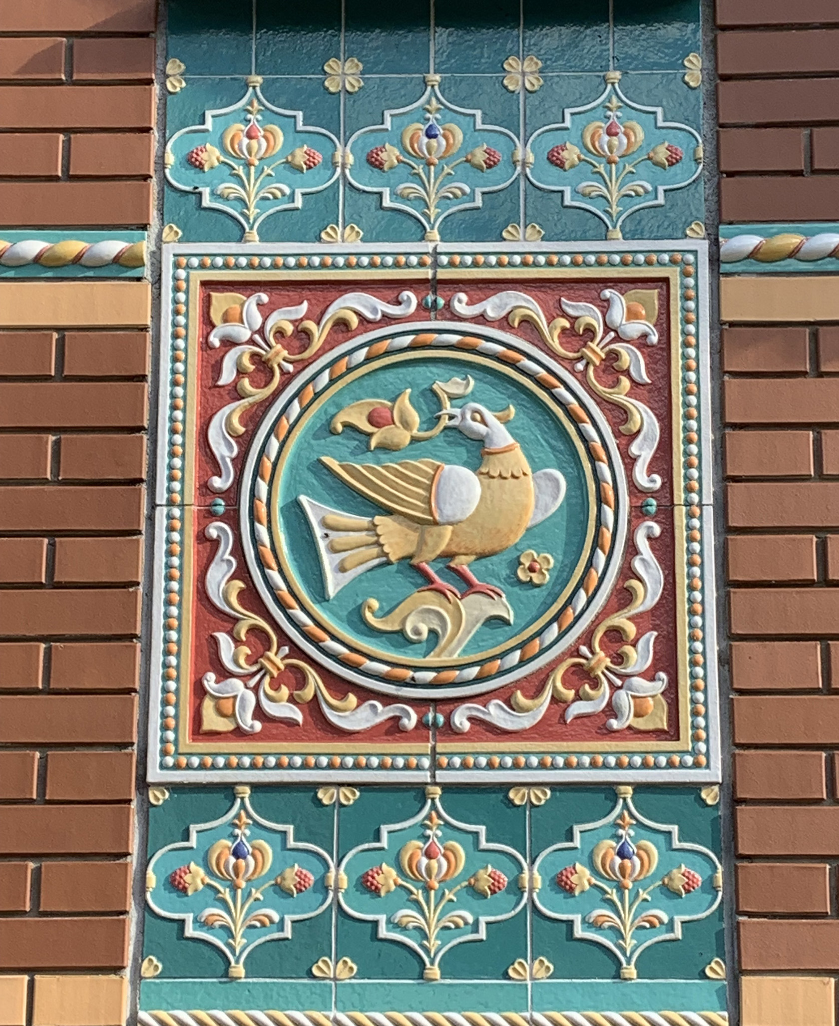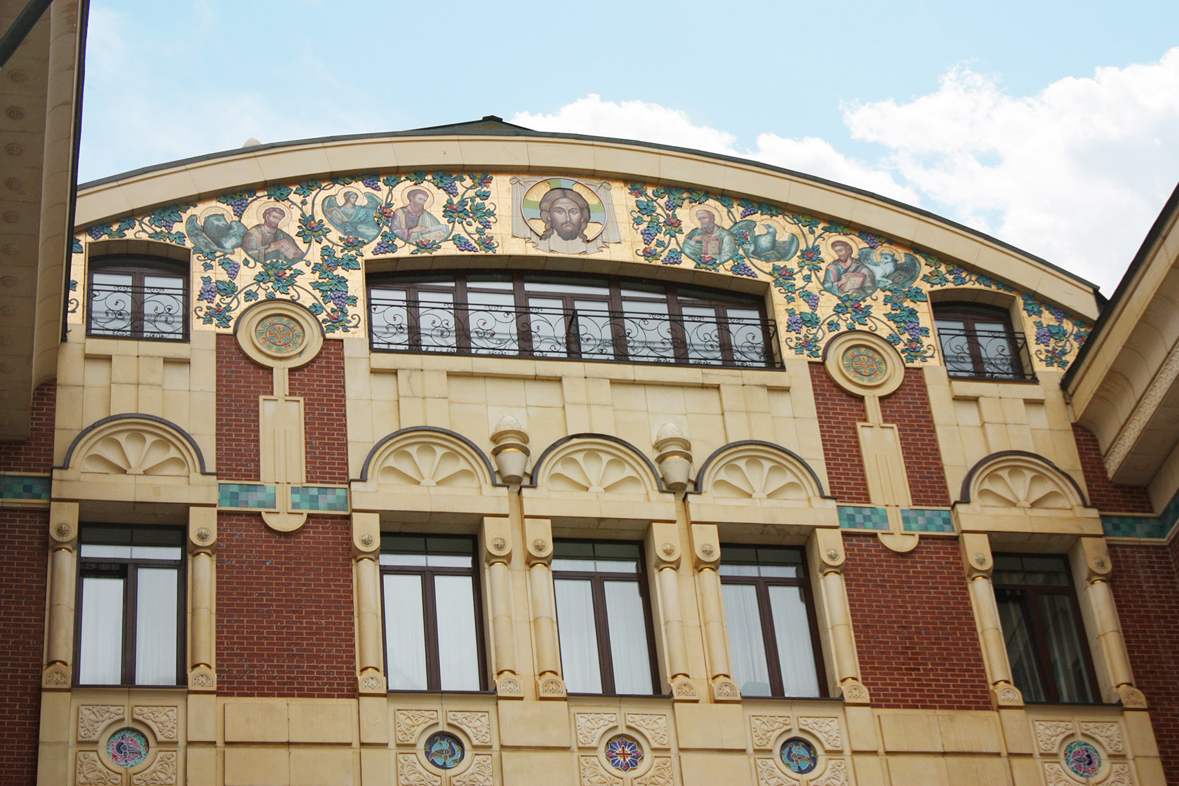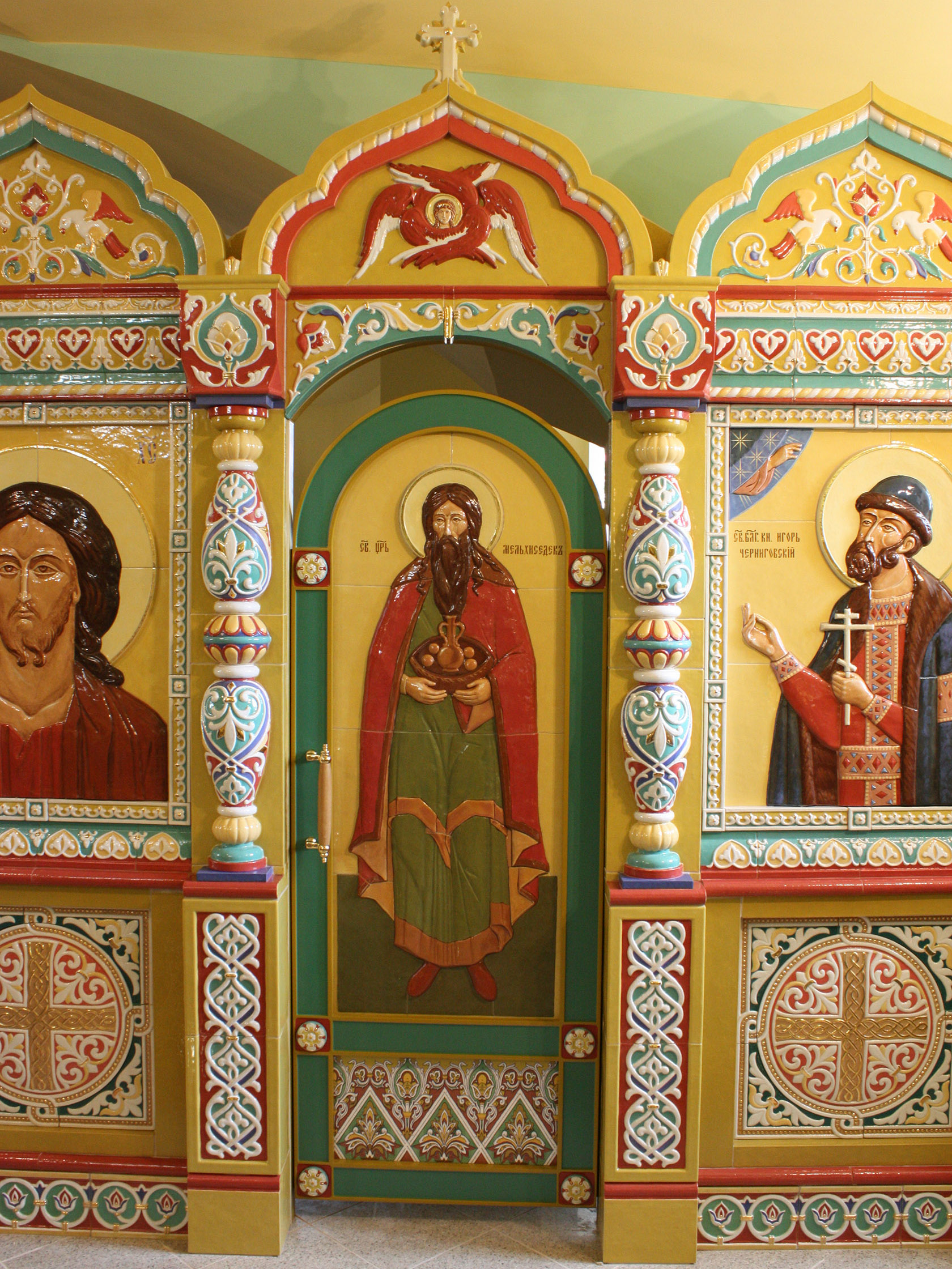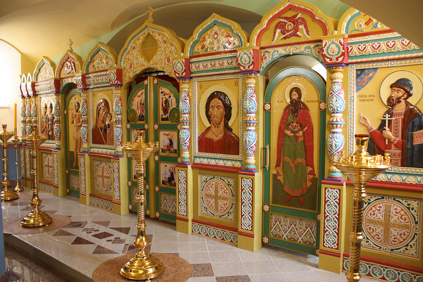 Отдельным направлением архитектурной керамики является благоукрашение храмов, это могут быть керамические иконостасы, фасадные иконы и изразцы, панно и медальоны.