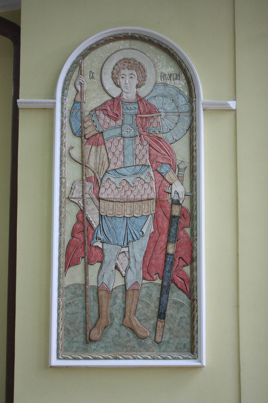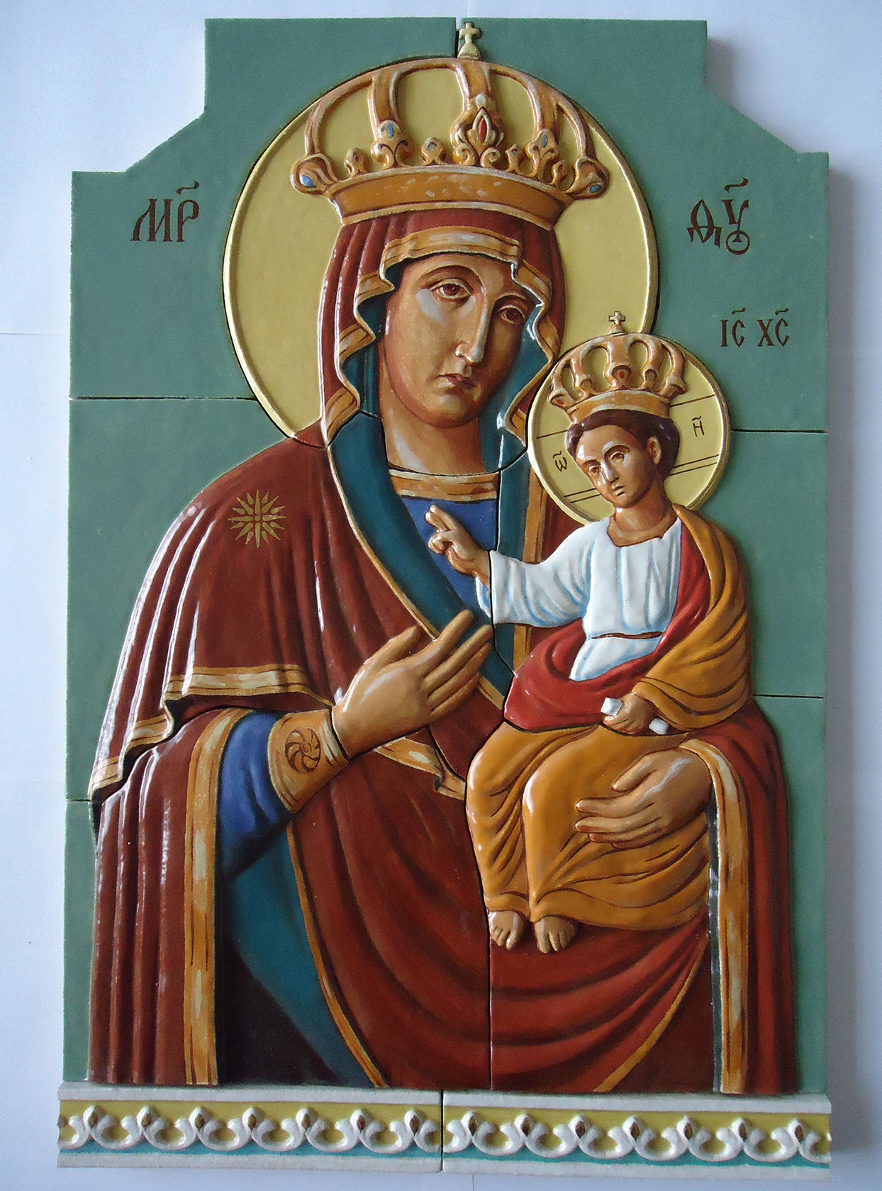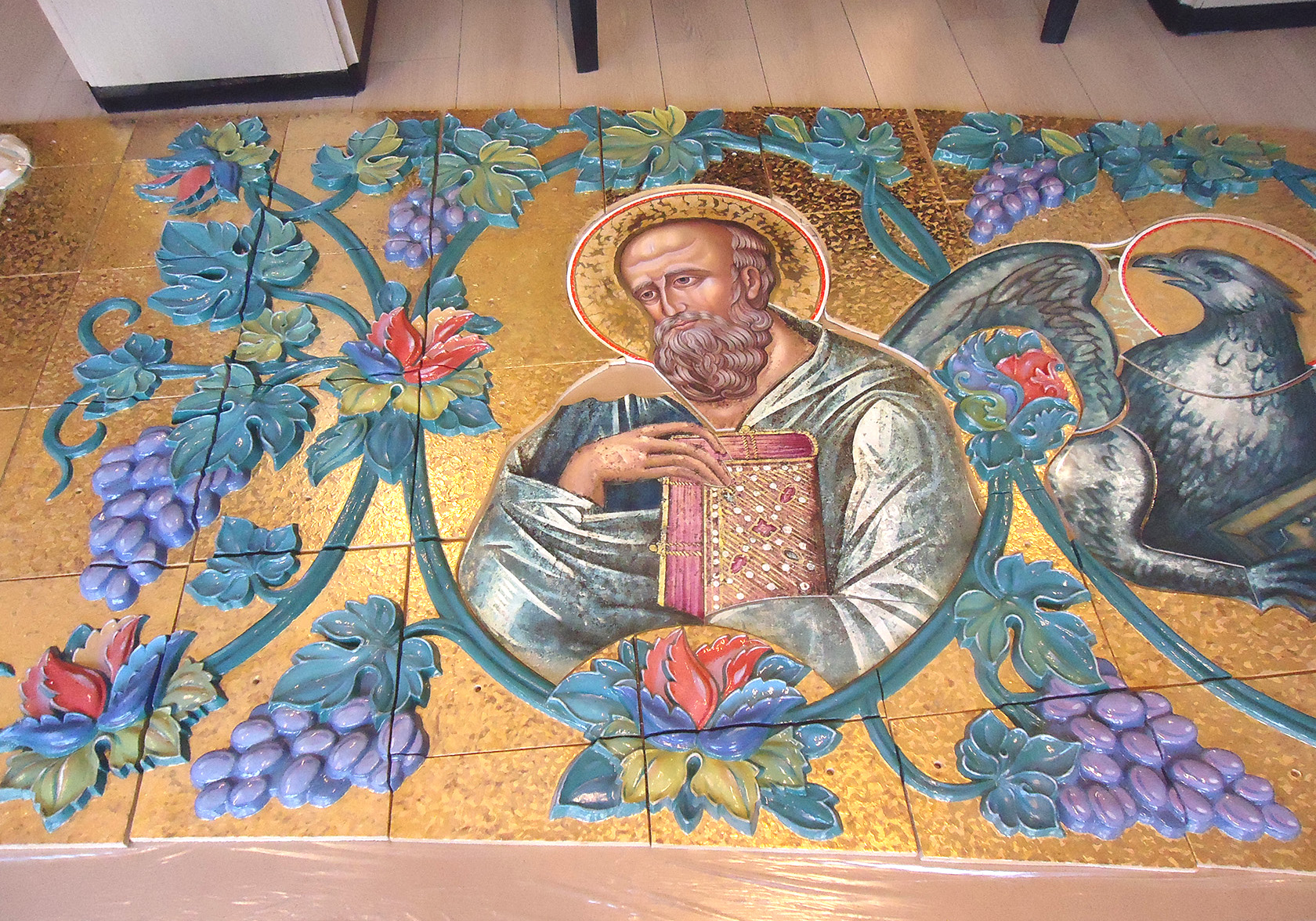 Керамические иконы. Храм Святой Елисаветы в Покровское-Стрешнево. г.Москва. Керамика, глазури. 170х70см. 2012 г.